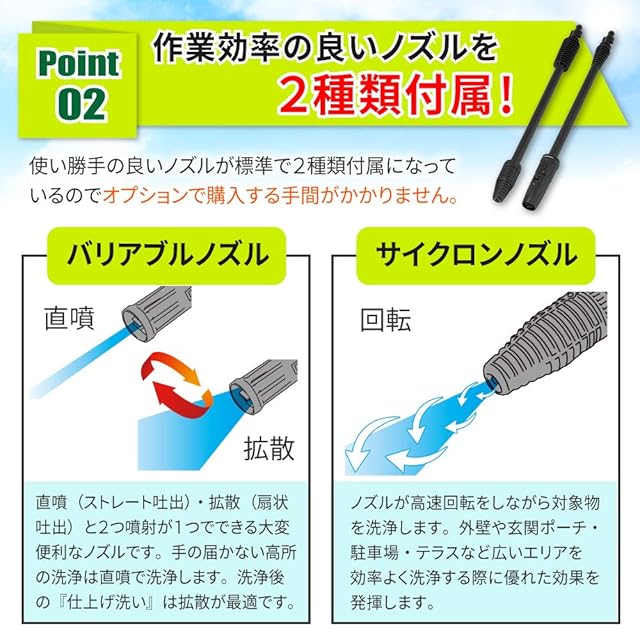 Vittorio(ヴィットリオ) 高圧洗浄機 Z1-655-5 【最大許容圧力 9.0MPa 常用吐出圧力6.5MPa 軽量コンパクトモデル】 ソフト高圧ホース サイクロンノズル付