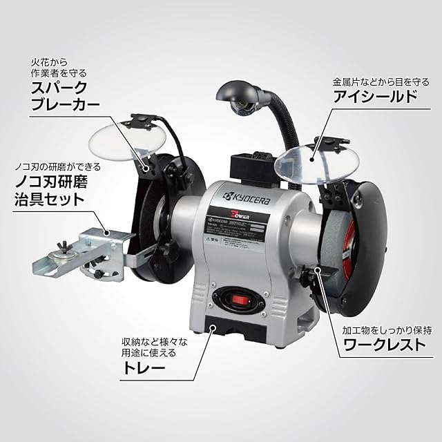 京セラ(Kyocera) 旧リョービ 両頭グラインダ 砥石径150mm TG-151 632551A 消費電力:300w 【刃物の粗研ぎに最適な1台】 砥石径150mm 定格使用時間30分 手元ライト 刃物研磨治具セット