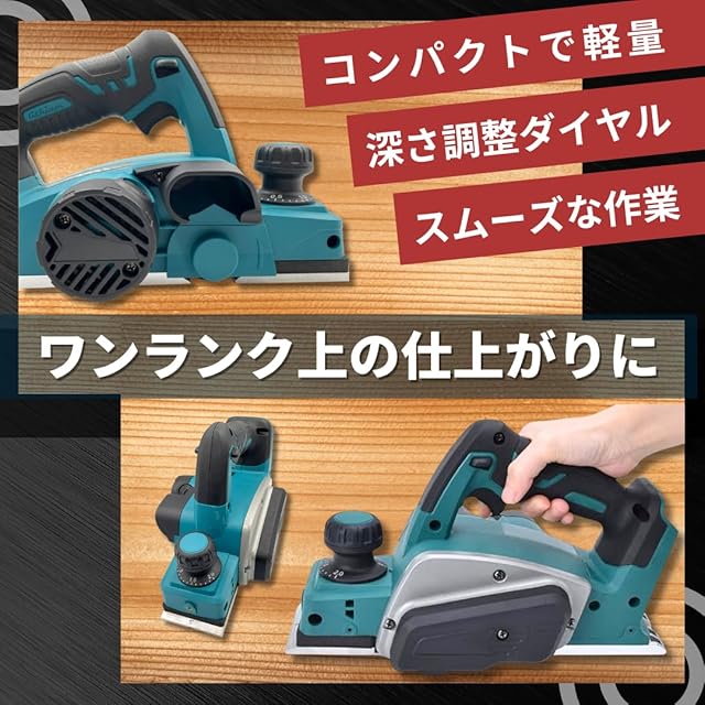 マキタ互換品 充電式 電気カンナ バッテリー2個 充電器 セット コードレス 工具 木工 電動カンナ 18ボルト 14.4ボルト バッテリー専用 18V 14.4V 電動工具 小型 コードレス(KAN01-BL) (バッテリー2個+充電器セット)