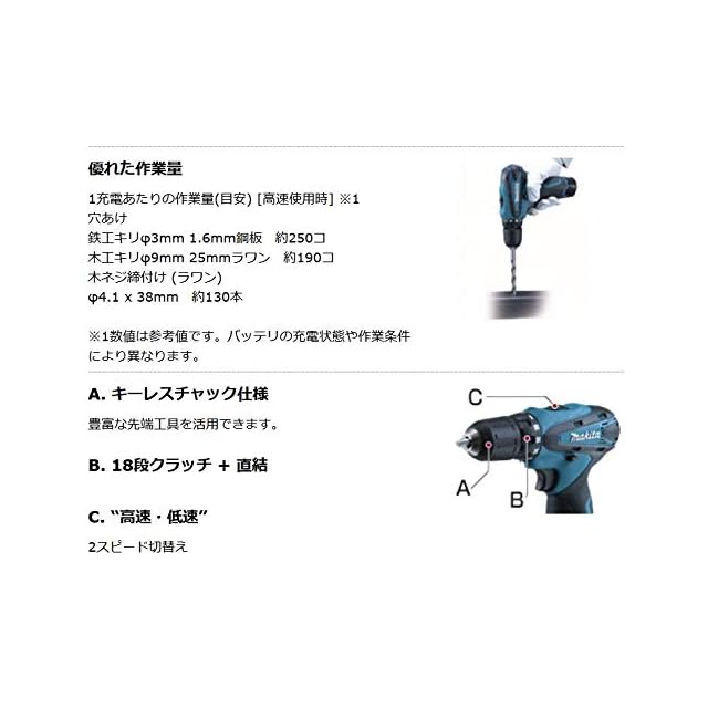 連続作業量目安(1充電):φ4.1×38mmラワン約130本