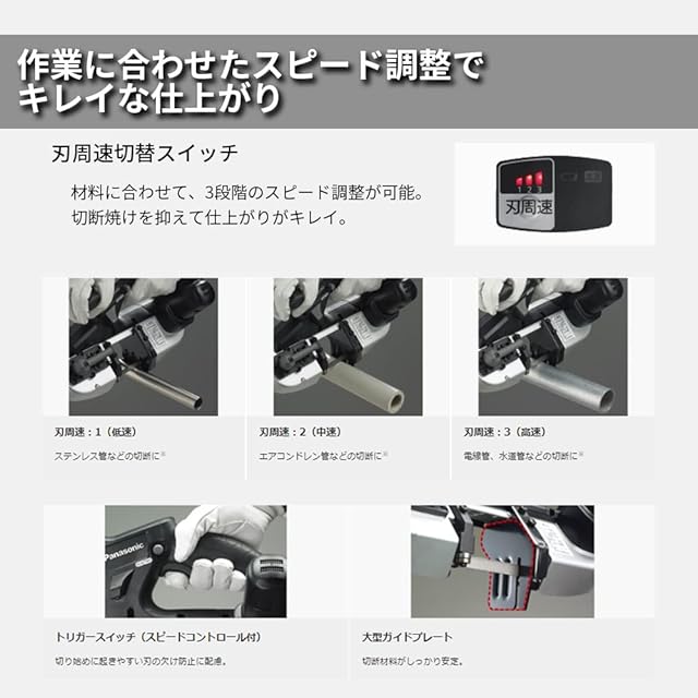 刃周速(無負荷時):1(低速)=120m/分、2(中速)=140m/分、3(高速)=162m/分