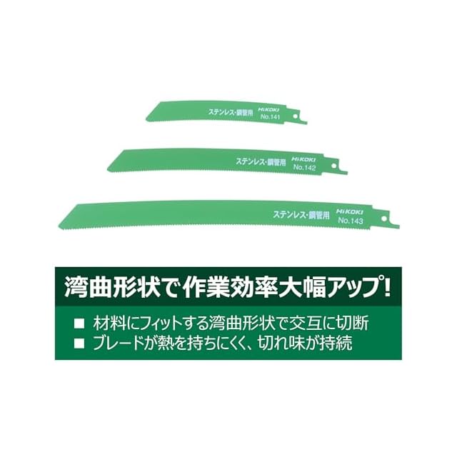 HiKOKI(ハイコーキ) 湾曲セーバーソーブレード レシプロソーブレード No.142 全長200mm 14山/インチ 50枚入 2mm以上ステンレス管材 0000-3462