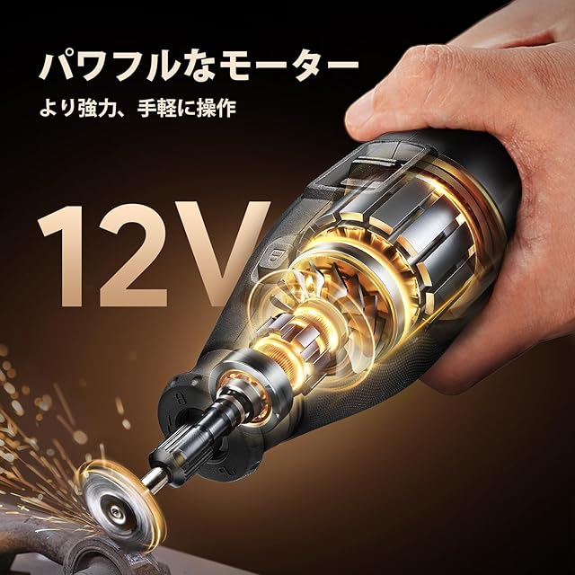 【12V&コンパクト】4Vや8Vのルーター 工具に比べて、12Vのコードレスミニルーターはより強力なパワーを持ち、コード付きミニルーターと同等の出力と回転数を提供しますこのミニルーターは重さ460グラム、長さ23センチで、コードを気にせず作業したい方に最適です