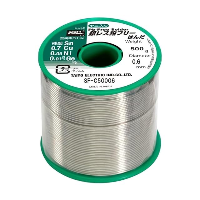 太洋電機産業(goot) 銀レス鉛フリーはんだφ0.6㎜ スズ残部/銅0.7%/ニッケル0.05%/ゲルマニウム0.01%以下 500g リール巻 ヤニ入り SF-C50006 日本製