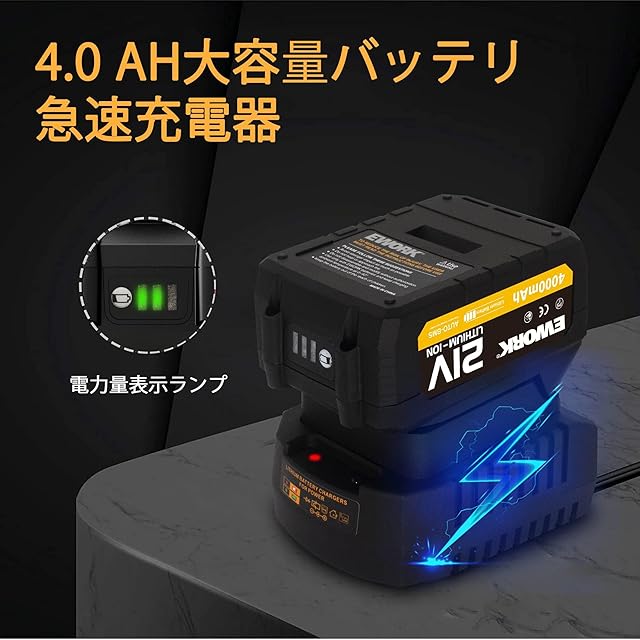 充電式インパクトレンチ-EWORK21Vブラシレスコンパクト最大700N.m高トルク電動インパクトレンチ4.0Ahリチウムイオンバッテリー、高速充電器、5ソケット、ツールバッグ
