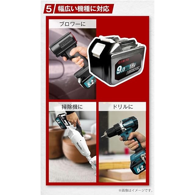【マキタの同電圧全機種に対応】マキタ純正の電動工具はもちろん、草刈機、掃除機、集塵機、ブロアー、空気入れなど18Vの機種には全て対応しており、問題なくご使用いただけます。