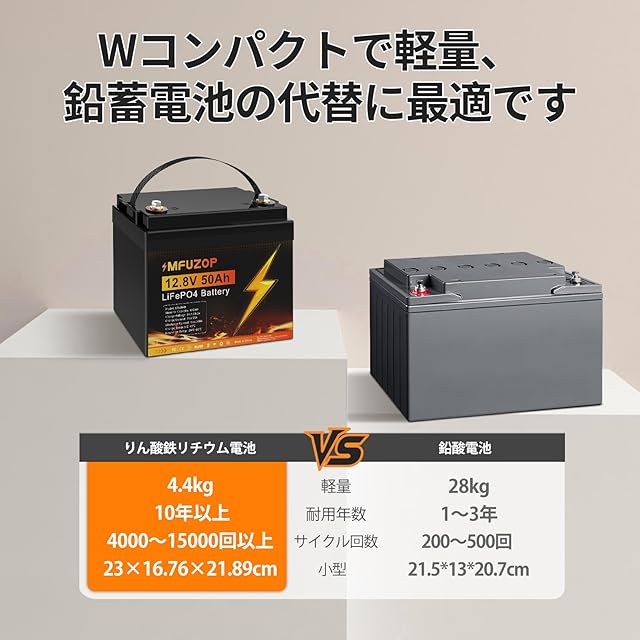 【2025新登場!最新の技術を採用】MFUZOP 12V 50Ah LiFePO4リン酸鉄リチウムイオンバッテリー 640Wh内蔵50AのBMS 15000回以上ディープサイクルバッテリー 直列 並列接続 RV ソーラー発電 セキュリティデバイス 車中泊 オフグリッド 防災対策