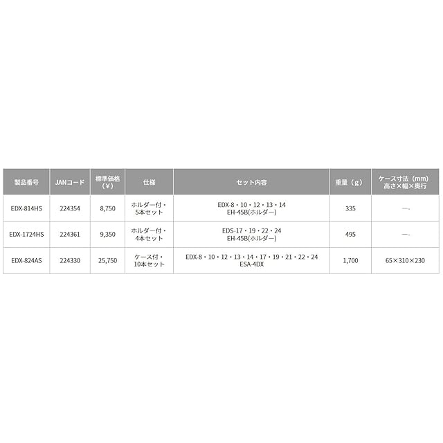 セット内容:EDX-8・10・12・13・14・17・19・21・22・24・ESA-4DX
