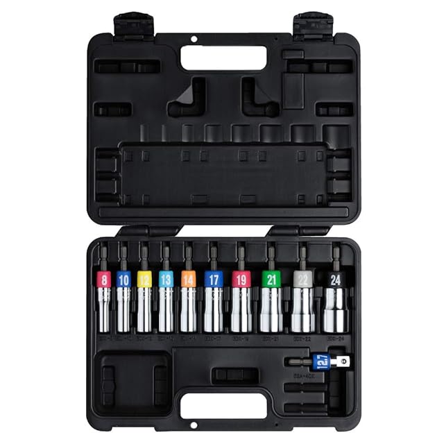 トップ工業 (TOP) 電動ドリル用 αアルファソケット11本組セット 8~24mm ケース付 変換アダプター付き EDX-824AS アルファシリーズ 燕三条 日本製