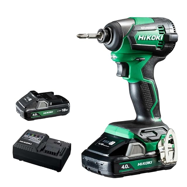 HiKOKI(ハイコーキ) 18V 充電式 インパクトドライバー シンプルモデル アグレッシブグリーン 4.0Ah電池2個・充電器・ケース付 ビット別売 WH18DE (2LC)