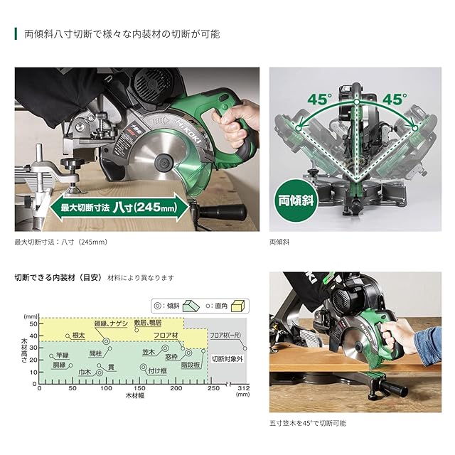 最大切断寸法(直角):高さ46mm(1寸5分)×8寸(245mm)