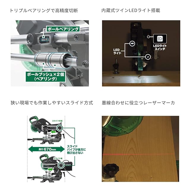 HiKOKI(ハイコーキ) AC100V 卓上スライド丸のこ C6RSHD 刃径165mm 両傾斜 最大八寸幅(245mm)切断 チップソー黒鯱付 レーザーマーカー・LEDライト付 C6RSHD(K)
