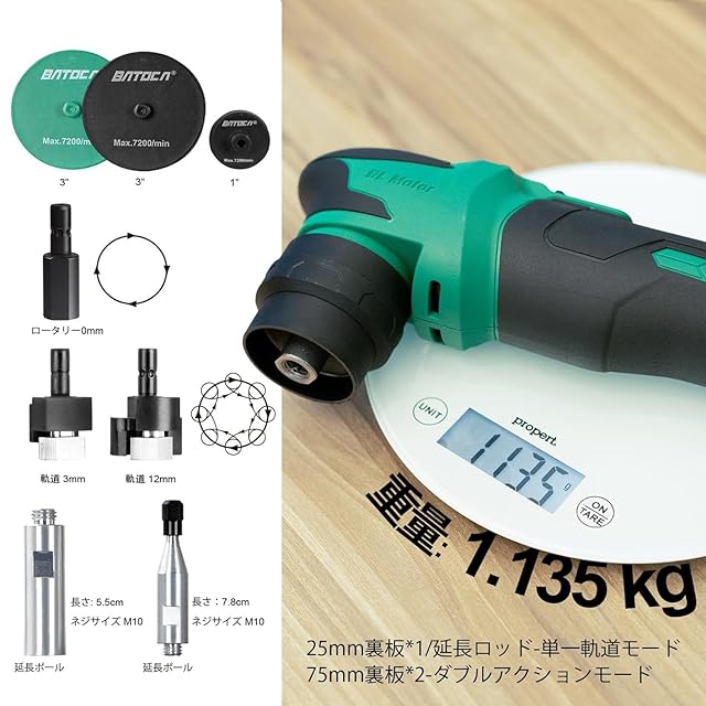 【ワンタッチ3秒モード切替】 ヘッド軽押込で「単一軌道モード」⇔「ダブルアクションモード」を約3秒即時切替。内蔵3mm/12mmオービットモジュールにより、荒研磨~鏡面仕上げまで単機完結。複雑曲面でも研磨ムラゼロ設計。