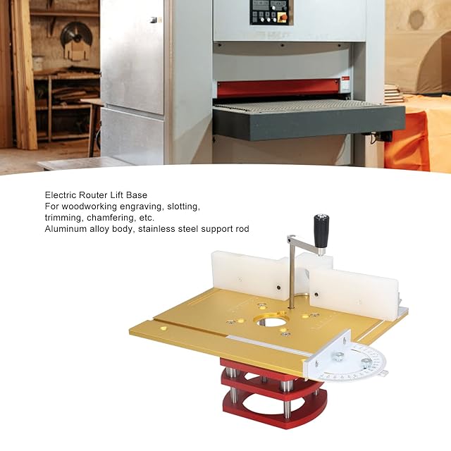 ルーター リフト キット、トップ プレート付きルーター リフト、インサート リング キット、アングル ディスク アルミニウム ルーター テーブル インサート プレート、木工用スロット トリミング 面取り テーブルトップ、ルーター トリマー ツール (金)