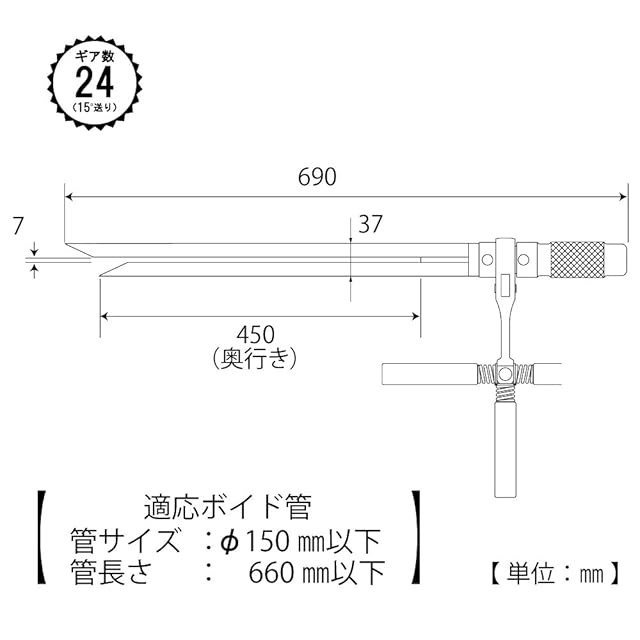 トップ工業 (TOP) ボイド管 ラチェット 直径150㎜ 全長600㎜以下のボイド抜き スリーブ抜き 建築工事 VR-450 燕三条 日本製