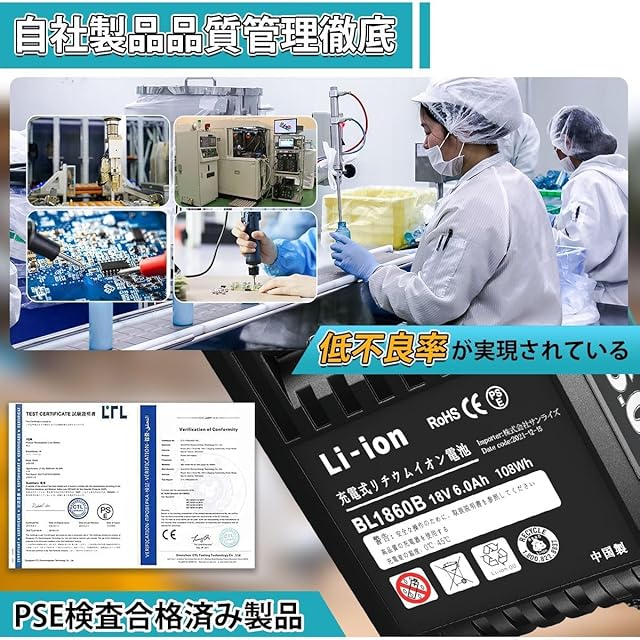 【PSE検査合格済み製品】・BL1860B互換バッテリーはPSE認証及びCE認証を取っています。保護回路を搭載し、過電流、過充電、過放電など多重保護機能付いていますので、ご安心利用ください。