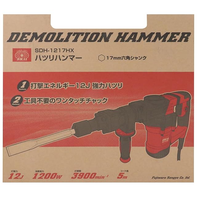 SK11(エスケー11) ハツリハンマー 17mm六角シャンク 打撃力12Jで強力ハツリ ワンタッチチャック SDH-1217HX