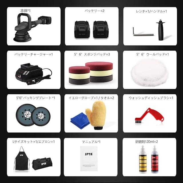 【プロフェッショナルなアクセサリーと優れた顧客サービス】 パックに含まれるもの: 1x SPTA ポリッシャー、2 x 18V 4.0Ah バッテリー、1 x 2.0A 高速充電器、6 x スポンジ研磨パッド、2 x ウールパッド、1 x 六角キー、2 x タオル、1 x ウォッシュ グローブ、1 x パッド クリーニング ブラシ。 1×ユーザーマニュアル。 すべてのお客様に費用対効果の高い製品を提供することを目指しており、すべての SPTA ツールには 12 か月のが付いています。 当社のサービスにご満足いただけない場合は、当社までお知らせください。
