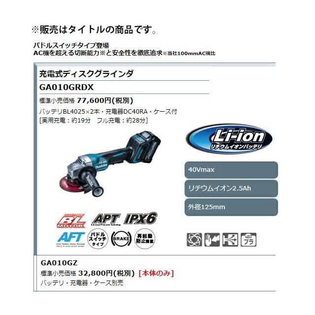 商品名:マキタ(Makita) 40Vmax 125mm充電式ディスクグラインダ バッテリ・充電器・ケース別売 GA010GZ