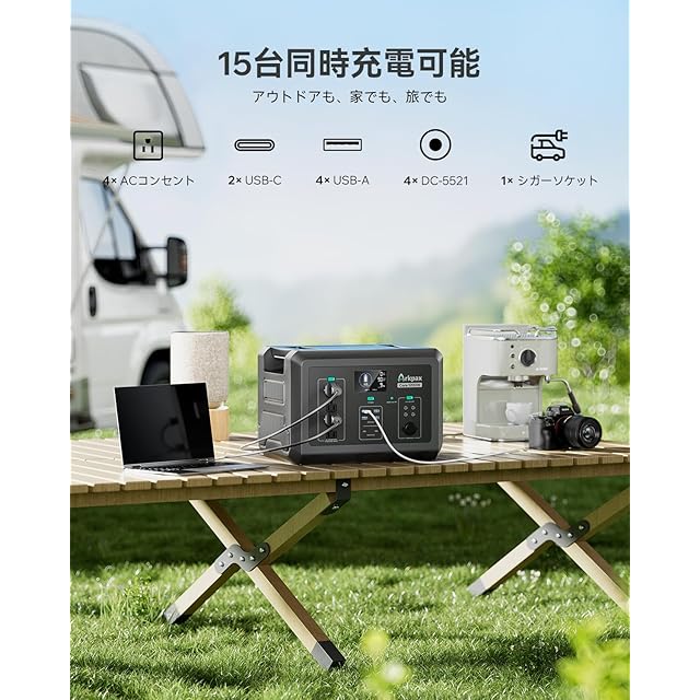 商品名:Arkpax ポータブル電源 1024Wh 大容量 リン酸鉄リチウム 10年長寿命 定格出力1200W 瞬間最大2400W 電力リフト12ミリ秒のUPS機能 防災・キャンプ・車中泊に最適 AC100V 50Hz/60Hz対応
