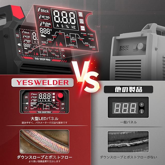 商品名:YESWELDER 溶接機 TIG溶接機 大型LEDデジタルディスプレイ 205A 100V 200V 高周波TIG/パルス式TIG/アーク溶接 1台3役 IGBTインバータ溶接機 電気溶接機 日本語説明書