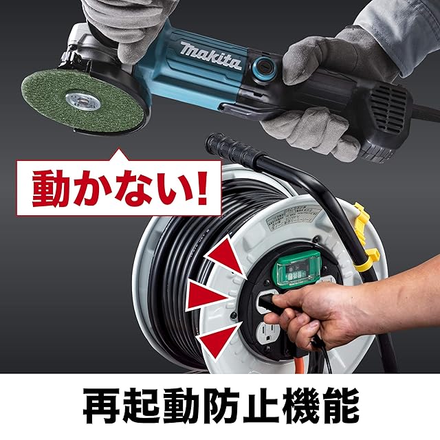 安全性を徹底追求。「国内初※」作業者の保護にこだわったACグラインダ(※パドルスイッチ仕様で、作業者保護機能を搭載したAC100Vグラインダにおいて。2020年1月現在、マキタ調べ)。