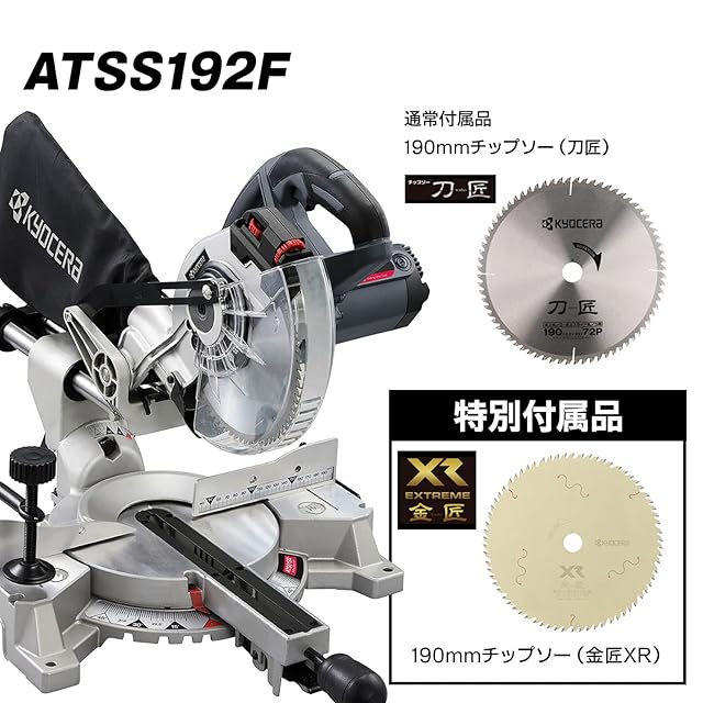 京セラ(Kyocera) 旧リョービ プロ用 卓上丸ノコ チップソー(金匠XR190mm)セット ATSS192F 4988356 シルバー 【レーザーマーカー付で墨線合わせが簡単で角度・傾斜・複合切断も可能】 ノコ刃190mm 回転数5000min-1 切断能力 (テーブル回転0度/傾斜左45度)38×220mm 軽量10.5Kg