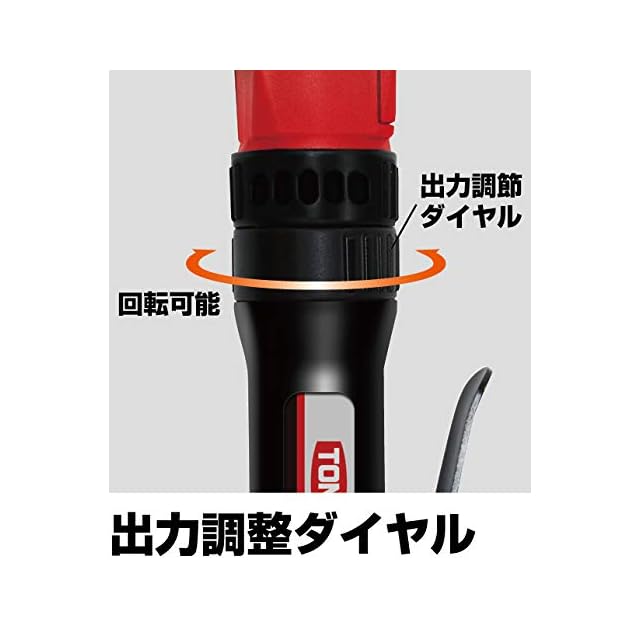 特徴:薄型ヘッド(高さ50mm・径55mm)・アルミケース合金製ハンマーケース・特殊強化樹脂ボディ・ハイパワーに優れたビッグハンマー構造・出力調整 回転方向切換ダイヤル(出力(右:2段階、左:1段階) 回転方向(F:正(右)、R:逆(左))・スイッチの握り具合で微妙な出力調整が可能。