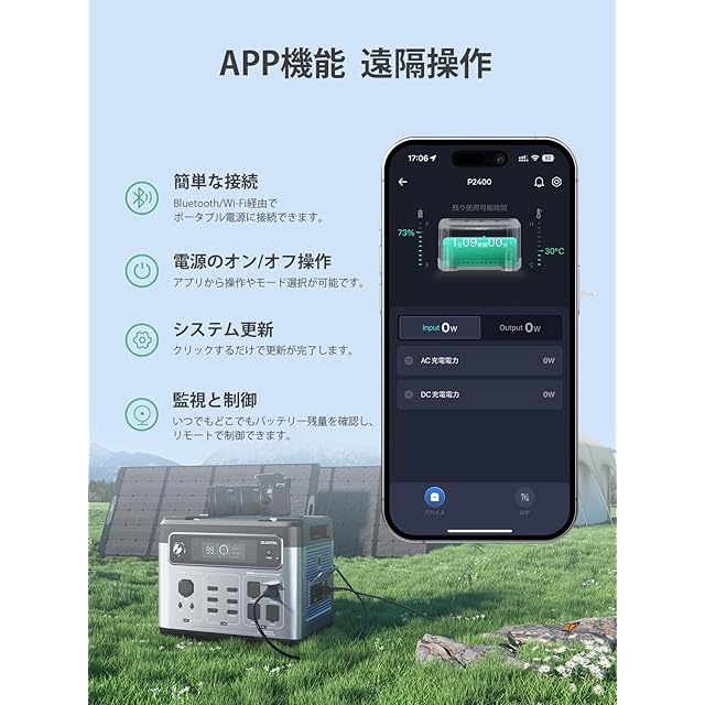 OUKITEL ポータブル電源 大容量 2048Wh (瞬間最大4800W)1.6時間満充電 13個出力口 AC2400W 充電ポート搭載 APP遠隔操作 UPS機能 リン酸鉄 純正弦波 MPPT制御方式 家庭アウトドア両用 ソーラー充電 AC100V 50Hz/60Hz対応 地震/台風/防災/停電/非常用 ポータブルバッテリー PSE認証済