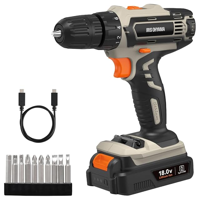 アイリスオーヤマ 充電式 電動ドライバー 18V Type-C 充電器不要 バッテリー付属 軽量&スピード調節機能 DIY初心者でも使いやすい JCD25TC サンドベージュ