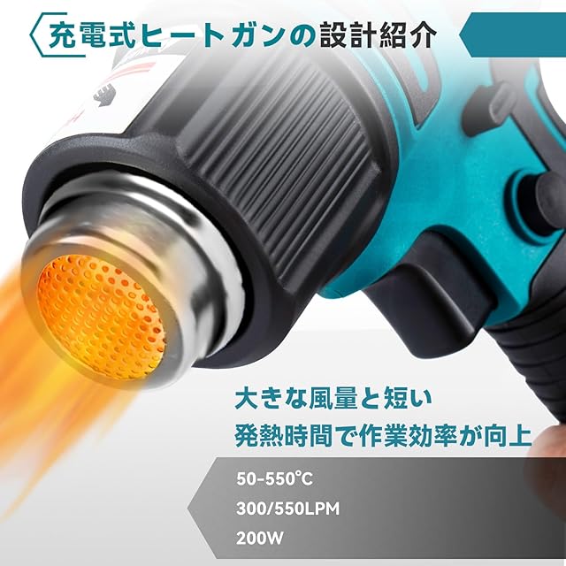 ONEVAN ヒートガン コードレス 18v マキタのバッテリー交換可能 6段風量調整 50~550℃調整 充電式ヒートガン 小型 熱風機 急速加温 充電式 軟化 加工 熱処理 DIY作業 PVCとレジンの収縮 塗料の剥離など適用 (本体+バッテリー*1)