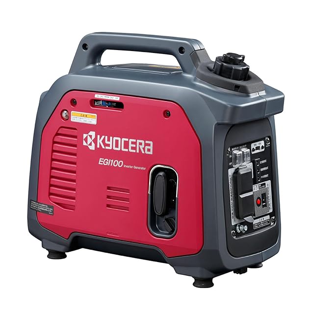 京セラ(Kyocera) 旧リョービ プロ用 エンジン発電機 EGI100 664700A 【電気を安定供給する正弦波インバーター搭載】グリーン購入法適合 超低騒音型 負荷に応じてエンジン回転数制御 連続使用時間約3.5~6.9時間 定格出力最大1000W 電動工具類使用時最大500W 冷蔵庫などのモーター類使用時最大200W 排気量60ml タンク容量2.5L 12.2Kg