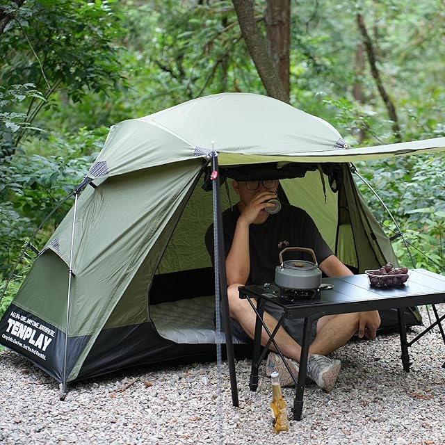 TENPLAY 26年モデル 一体型 自立式 ソロテント コット用テント 1人用 簡単設営 軽量 小型 コンパクト アウトドア キャンプ 7001アルミ 2kg 190x70x120cm 防水 耐水5000mm 前後出入り ハイキング バイク 自転車 登山 ポップアップテント 紫外線対策 収納バック付き 持ち運び便利