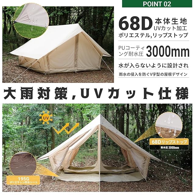 商品名:NEUTRAL OUTDOOR 家型テント 2ポール 耐水3000mm アウトドア キャンプ テント クラシックな外観のロッジ ファミリー ポリエステル生地 ベージュ 収納袋付き NT-TE10 3-6人用