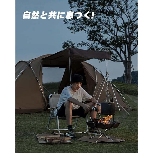 【双ドア設計で通気性抜群】双ドア設計とメッシュ窓を搭載し、通気と防風の両機能を兼ね備え、開放感も抜群です。両サイドには特別にドローコードを付属したベンチレーターを設けており、効率的に換気を保ちつつ、悪天候でも雨水の侵入を防ぎ、快適に過ごせます。寝室にはメッシュスクリーンがついていますので、通気性を確保しつつ、虫の侵入を防ぐことができます。