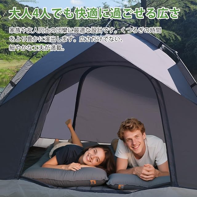 商品名:ワンタッチテント 4人用 ポップアップ 簡易 テント 4人用 大型 折りたたみ 防災 ワンタッチ 大人数 210cm キャンプ UVカット 防風防水 防虫対策 耐水圧 遮陽 軽量 簡単設営 通気アウトドア 収納バック付き ビーチ お花見 防災用 登山