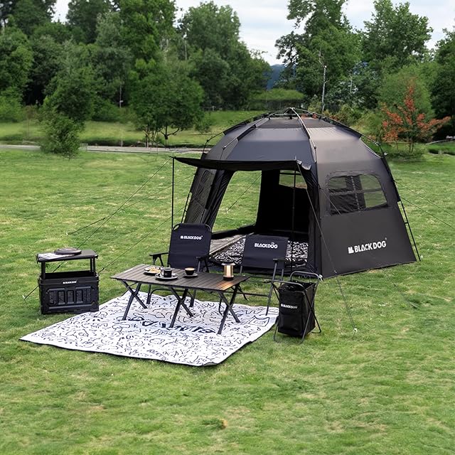 【公式】BLACKDOG ワンタッチテント 大型六角屋 3.5m 2~8人用 UPF50+ 設営簡単 uvカット 自立式 耐水圧PU3000 3つの前室 初心者向け 前室ポール付き キャンピング アウトドア ファミリーキャンプ お花見 収納袋付き