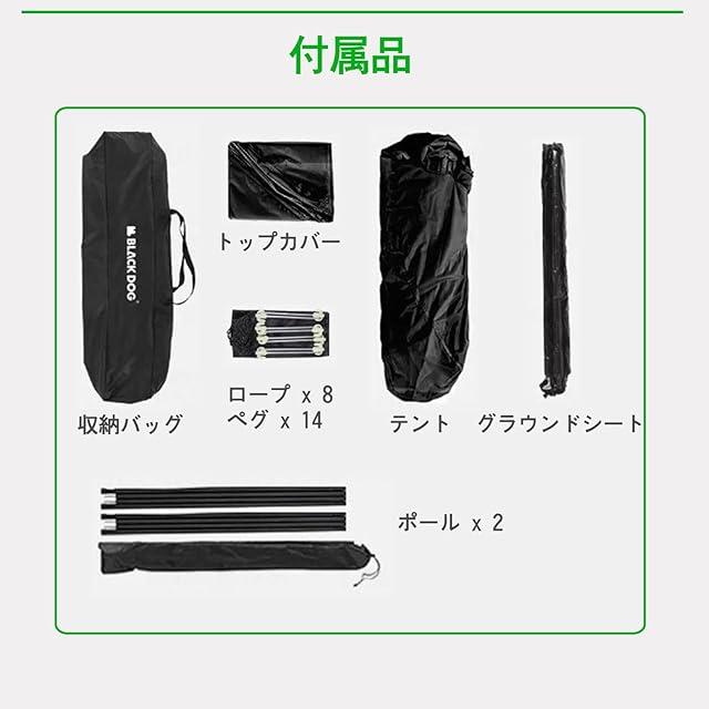 ●特徴-六角形ワンタッチテント ●ブランド-BLACK DOG ●製品サイズ- 350*350*200 6.9kg ●色-ブラック(2-6人用) ●収納サイズ:(約)W127×D21×H21cm ●材質-オックスフォード150dガラス繊維アルミニウム この商品について ●【BLACKDOG六角形ワンタッチテント】 ブランドの信頼性と優れたデザインが特微のテントです。六角刑の刑状とダイヤモンドグランドのスタイルが、一般的なテントは一線を画しています。 4シーズンに対応した丈夫うな構造で、1ベッドル―ムを備えています。 展開のサイズは350*350*200㎝で、広々とした空間を提供します。また、折りたたんだ状能でのサイズは127*21*21㎝で、持ち運びにも便利です。 重量はわずか11㎏でおりながら、エリアは12.5mもあるため、6-8人の利用に最適です。 ● [PU3000+&UPF50+] 生地には150Dポリエステルオックスフォードを使用し、UPF50+のUVカット効課も備えています。カバーには耐久性に優れた190Tポリエステルを採用し、安心して使用することができます。ポールにはグラスファイバーロッドとアルミロッドを使用しており、強度と安定性を兼ね備えています。 さらに、B3メッシュ40GSMのメッシュが付いているため、快適な通気性を実現しています。さまざまな天候に対応したテント耐久圧は2000-3000㎜で急な雨にも安心してご使用いただきます。 ● 【BLACKDOGアウトドアテント】 キャンプやアウトドアイベントでの利用に最適なテントです。対応やデザインが他のテントとは一線を画しているため、固囲から注目されること間違いありません。 広々とした空間は、大人数の利用にも対応できます。家族や友達と楽しむキャンプや、イベント会場の中心になるテントとしてもピッタリです。