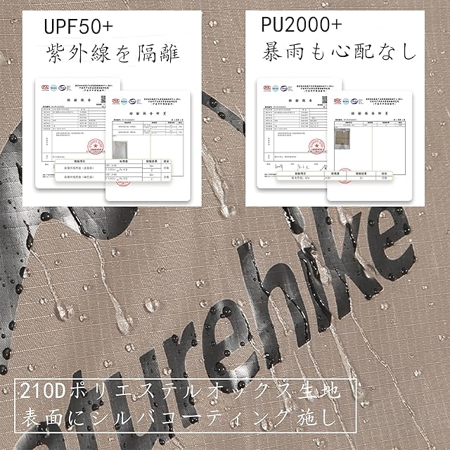【安心される生地】この二人用テントは210Dポリエステルオックスを採用しており、防水2000mm+に達しました!突然の雨でも安心し、テントの中に快適な睡眠を享受できます。また、テント表面にはシルバコーティングを施され、UPF50+で、有効的に紫外線を隔離でき、野外で皮膚の健康を守ります。さらに、ボトムテントは防水&耐摩擦の300Dポリエステルオックスを使用し、テント内に休んでいるキャンプマンを保護します!