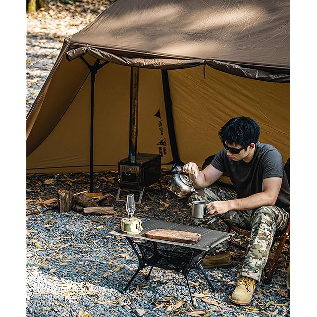 広々とした内部空間のテント: このテントは古典的なパン屋のテントに似ています。パン屋スタイルのテントは、睡眠エリアと広々とした玄関エリアを備えた古典的なテント設定です。 玄関エリアには床がなく、睡眠エリアの前に天然の座席と暖炉エリアがあります。このテントの内部使用スペースは260cm×260cm×175cmで、SOLO HOMESTEADよりも広く、側面には煙突口が配置されていて、秋冬の季節には快適な空間を提供します。 一人用には十分な広さで、2人用にもゆったり快適に使用できるサイズ設計、圧迫感をまったく感じさせません!