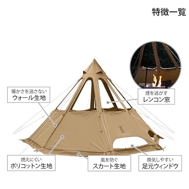 DOD(ディーオーディー) レンコンテント2M 中で焚き火ができる冬仕様ワンポールテント T3-736-TN