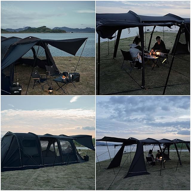 MOBI GARDEN トンネルテント 大型 5-8人用 インナーテント1個付き【天井カバーとグランドシート付きません】2層構造 耐水圧3000mm UPF50+ 防雨 防風 四面ドア アウトドアキャンピン 自立式 大型 通気 コンパクト ハイキング 防災 簡単設営