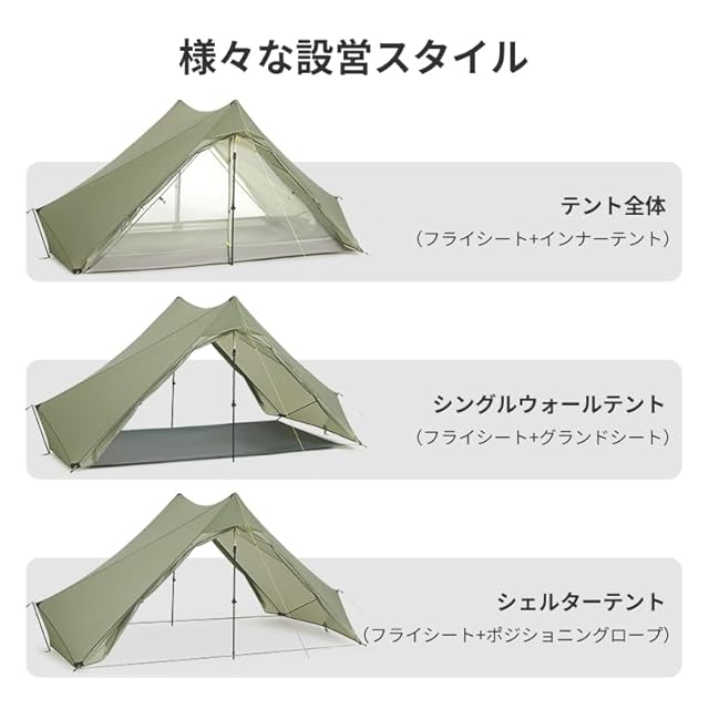商品名:Naturehike 登山テント Summiture UL 超軽量 ピラミッドテント 2人用 山岳 ハイキング 軽量 キャンプ コンパクト 耐水圧2000mm