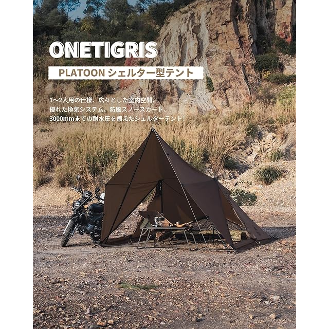 OneTigris PLATOON シェルターテント 2人用大型テント 立体ベンチレーション 耐水圧3000mm スノースカート付き