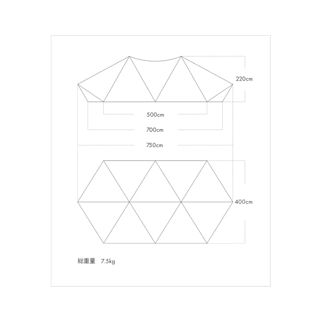 多彩なパネルアレンジと広い空間設計を追求。ギギ1の基本デザインをそのままに、ツーポール仕様に仕上げたラージサイズシェルター。