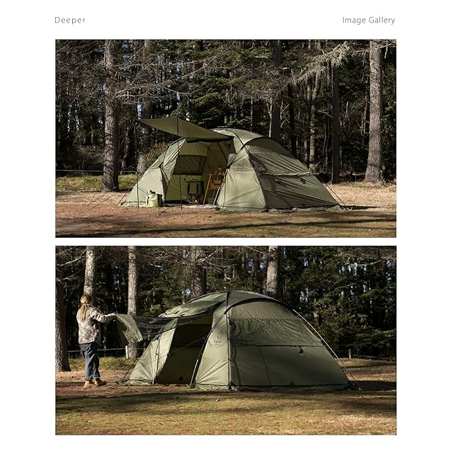 S'more(スモア) Deeper ディーパー テント 2ルーム ポリエステル 4人 収納バッグ付き ファミリー 耐水 UPF50+ カーキ