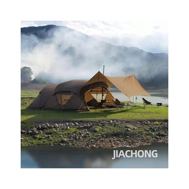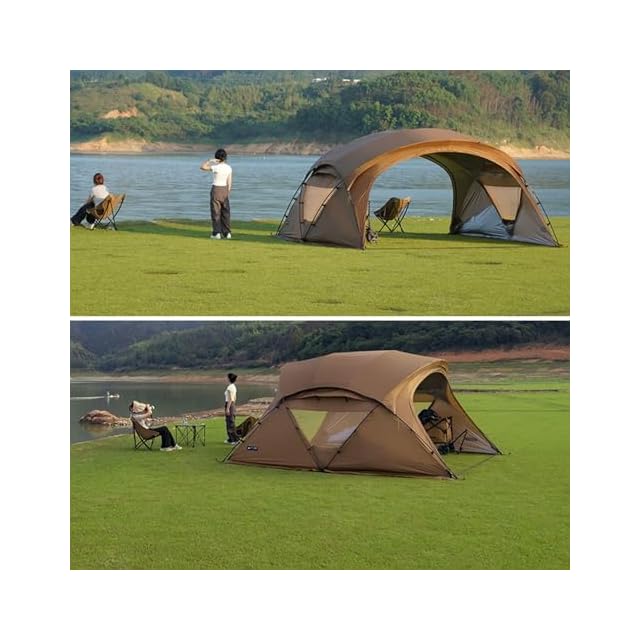 【より広いスペース】延長テントと使えば、テントの中により広いスペースを作れます。多人用なキャンプに対応できます。この大型テントはシリコンコーティング施した70Dナイロンを採用し、防水4000+、日除け、引き裂き防止性能が備えています。また、高品質7001アルミ合金ポールを使用し、強く風でも簡単に対応できます!アウトドアで、どんな天気でもテントの中にゆっくり休めます。最大4~6人が収容でき、ファミリーキャンプに超ふさわしいです!