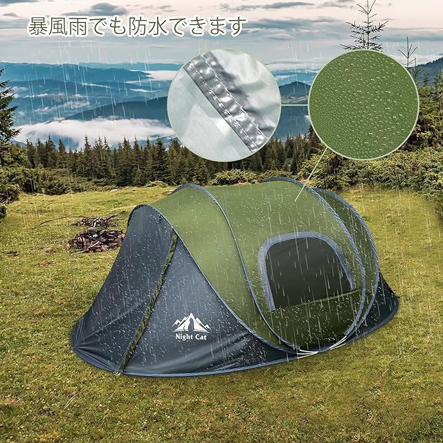 Night Cat ポップアップキャンプテント 2 3人用 自動インスタントテント 防水 簡単設営 アウトドア