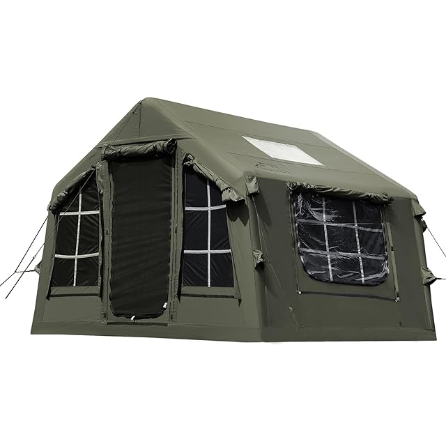 GOTENTIFY インフレータブルテント エアー アーミーグリーン 簡単組み立て ポリコットン素材 2~3人用 ロッジ 煙突穴付き 4シーズン ロッジ ファミリー 収納袋・ペグ・空気入れ付き (Green)