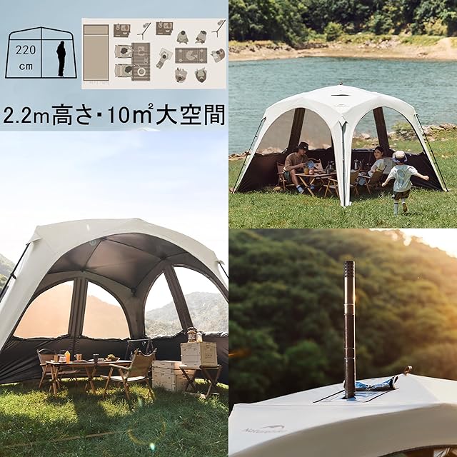 Naturehike タープテント 10㎡大空間 ワンタッチ 四面無限連結可能 UPF12500+ 耐水圧5000mm+ 遮光 遮熱 通気 超軽量 UVカット 自立式 キャンプ アウトドア ロッジ 登山 防災用 応急 簡単設営 防紫外線 3~4人用 ドーム 車用 多機能 耐摩擦 トンネル ツーリングテント (インナーテント, 大きいタープ)